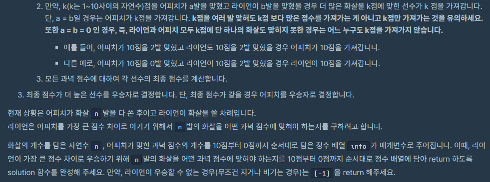 def solution(n, info):